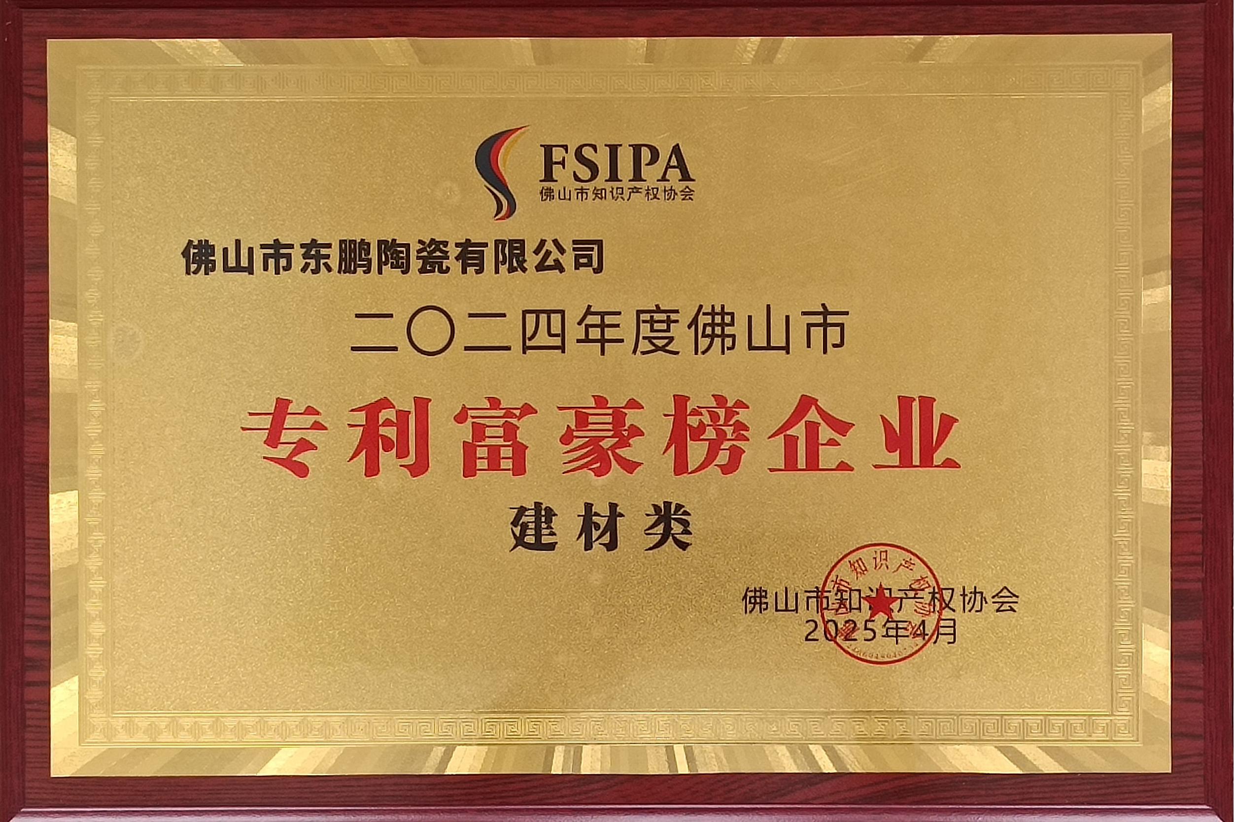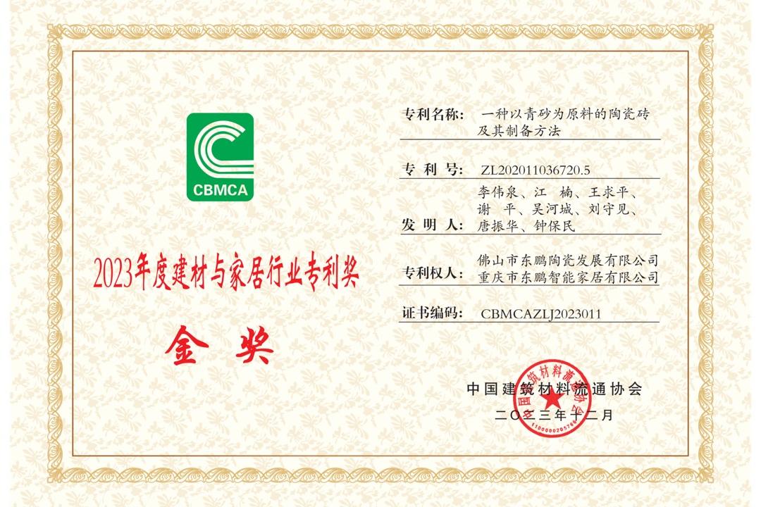 持续的科研耕耘,东鹏控股收获了在知识产权领域的认可,公司已持续获得四项中国专利优秀奖,并斩获广东省专利金奖(行业唯一)及优秀奖,国家建材与家居行业专利奖金奖及优秀奖等多项权威荣誉,同时,东鹏还荣膺国家知识产权示范企业,国家知识产权优势企业,广东省知识产权示范企业称号,是行业内唯一连续12年荣登佛山市专利富豪榜的企业,截至目前,东鹏已累计获得国家知识产权局授权的各类型有效专利1327项 樱花视频网站,其中发明专利414项, 。