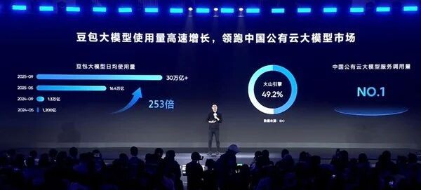 △ 在FORCE LINK AI创新巡展武汉站上 樱花视频,字节跳动旗下火山引擎披露最新大模型token调用数据,火山引擎总裁谭待现场表示,截至2025年9月底,豆包大模型日均tokens调用量已突破30万亿, 。