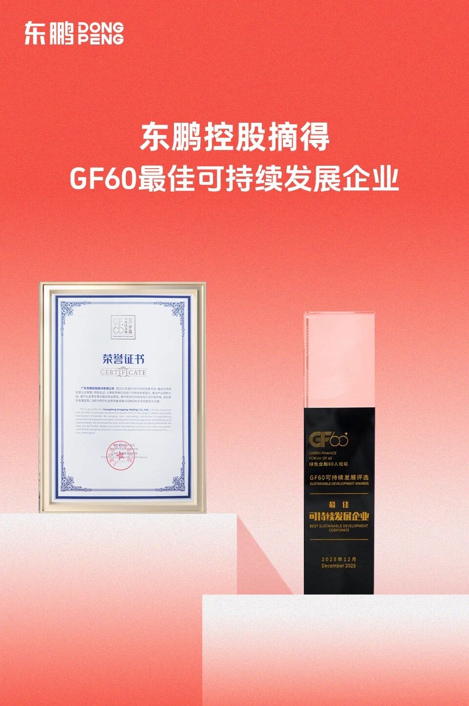在当前国家扎实推进“双碳”目标、构建绿色低碳循环经济体系的背景下,企业ESG表现已成为衡量其可持续竞争力的关键维度。东鹏控股积极响应国家战略,将绿色引领,社会为先理念贯穿企业运营全程,以扎实行动践行责任担当。近日,东鹏控股在ESG与可持续发展领域屡获权威认可,接连斩获五项重磅荣誉。⚪荣获“第三届国新杯·ESG金牛奖百强”11月26日,在由中国证券报、中国国新联合主办的2025年金牛企业可持续发展论坛暨第三届国新杯·ESG金牛奖颁奖典礼上,东鹏控股入选“ESG金牛奖百强”。该奖项旨在激励上市公司深化ESG治理、强化风险管控、提升可持续发展能力,此次入选反映了其在资本市场与实体经济中的双重价值获得高度认可。⚪获评“最具社会责任上市公司”11月7日,在证券之星第十三届资本力量年度品牌活动颁奖典礼上,东鹏控股获颁“最具社会责任上市公司”奖项。该奖项聚焦企业在公益投入、员工关怀、社区共建、绿色生产等方面的贡献。此次获奖,既是对企业多年来积极践行社会责任的肯定,也是对其在可持续发展道路上不断探索和创新的认可。⚪荣获“上市公司最佳董事会奖”12月11-12日,由《每日经济新闻》主办的“2025第十四届中国上市公司发展年会”在海南举行。会上,“2025第十五届中国上市公司口碑榜”揭晓,东鹏控股董事会凭借其规范的运作机制、高效的决策能力以及对公司长期价值的坚定维护,荣膺“上市公司最佳董事会奖”。⚪荣登“2025年中国令人尊敬的品牌”无形资产及声誉活跃30强榜单近日,东鹏控股入选“2025年中国令人尊敬的品牌”无形资产及声誉活跃30强。该评选综合市场表现、品牌影响、创新能力、社会责任等多维度,东鹏凭借在绿色技术研发、国际拓展与雇主品牌建设等方面的引领实践,展现出可持续的品牌韧性与发展底蕴。⚪摘得GF60最佳可持续发展企业12月11日,在“2025年度GF60可持续发展评选”中,东鹏控股凭借其在低碳转型、循环经济与环境保护等方面的扎实成效,荣获“最佳可持续发展企业”称号。该奖项彰显了东鹏在清洁生产、节能降耗与绿色创新方面的持续投入,不仅契合绿色金融政策导向,也为行业绿色升级提供了可借鉴的实践样本。未来,东鹏将继续深化可持续发展战略,加强技术创新与社会协作,致力在可持续领域实现新突破,为行业高质量发展贡献更多力量。